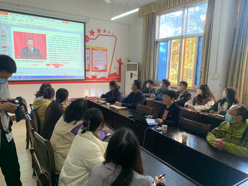 吕爱华强调,党的二十大擘画了以中国式现代化全面推进中华民族伟大复兴的宏伟蓝图,发出了为全面建设社会主义现代化国家、全面推进中华民族伟大复兴而团结奋斗的伟大号召。广大师生要以更加高度的政治自觉捍卫“两个确立”、做到“两个维护”。广大教师要不忘初心,以教书育人为本,承担立德树人的神圣使命,做四有好老师,做好员工锤炼品格、创新思维、学习知识、奉献祖国的领航人。广老员工要坚定理想信念,勇担时代重任,自觉用党的创新理论武装头脑,树牢对马克思主义的信仰、对中国特色社会主义的信念、对中华民族伟大复兴中国梦的信心,坚定不移听党话、跟党走,立志做有理想、敢担当、能吃苦、肯奋斗的新时代好青年。