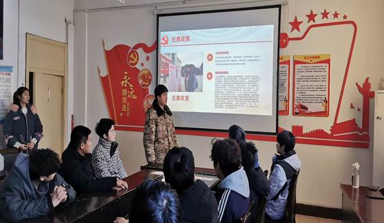 座谈会现场,系部征兵专干黄华老师化身“政策通”,以详实的数据、生动的案例为大家全方位解读征兵政策。从征兵报名流程的每一个精细环节,到征兵体检标准的严格要求,无一遗漏。在讲解征兵报名流程时,她特别强调兵役登记作为第一步的关键意义,提醒青年们登录“全国征兵网”, 要如实准确填写、修改兵役登记信息,然后再进行网上征兵报名,“这关系到后续一系列审核能否顺利进行,大家务必重视。”谈及征兵体检标准,更是对照着图文资料,对身高体重、视力、外科、内科等关键指标深入阐释,“像男性身高需160cm以上,女性158cm以上,体重有相应的标准范围,不同兵种还有细化差异,大家提前了解,心里有数。”