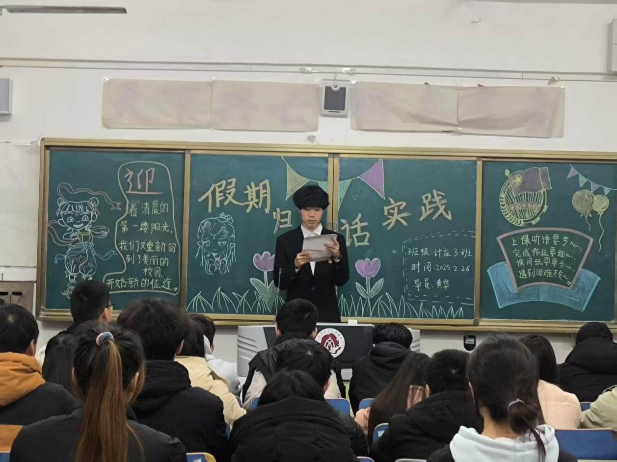 在团课上,同学们积极分享了在寒假“返家乡”社会实践中的个人所见、所思、所感,并通过岗位实习实践、乡情民情考察和服务家乡建设等活动,让他们在基层一线磨砺自我,收获宝贵的经验与成长。通过分享交流,同学们不仅巩固了寒假期间的实践教育成果,还激发了更多同学参与社会实践的热情。